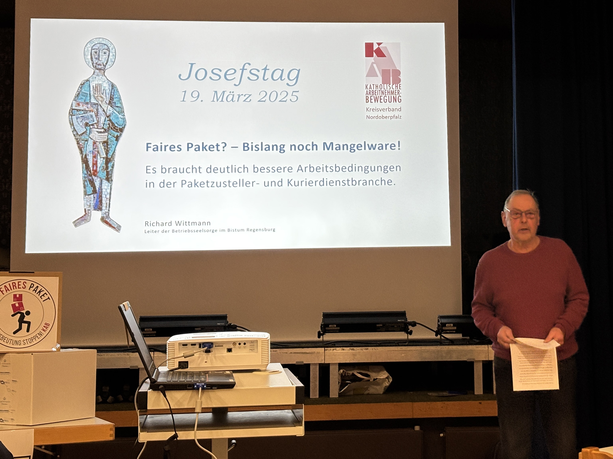 Der hohe Krankenstand hat Gründe, war sich Richard Wittmann am Mittwochabend sicher, als er bei der Katholischen Arbeitnehmerbewegung (KAB) im Pfarrheim St. Johannes über die Arbeitsbedingungen in der Paketzustellbranche referierte. Als Termin hatte er den Josefitag gewählt, der von der KAB hochgehalten wird, weil auch die Bewegung im Bräutigam der Gottesmutter ihren Patron hat.