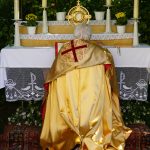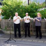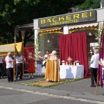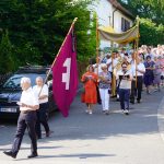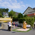 Die Sonne strahlte vom weißblauen Himmel, als die Fronleichnamsprozession mit dem Allerheiligsten betend und singend durch die Straßen des Ortsteils zog. Bei den bunt geschmückten Altären machte Pfarrer Gottfried Schubach Station und erteilte den eucharistischen Segen. Die musikalische Begleitung unternahmen im Wechsel die Chorsängerin Waltraud Schätzler und die Bläsergruppe. Die Prozession endete beim letzten Altar vor der Kirche mit dem Lied „Großer Gott, wir loben dich“ und dem festlichen Glockenklang.