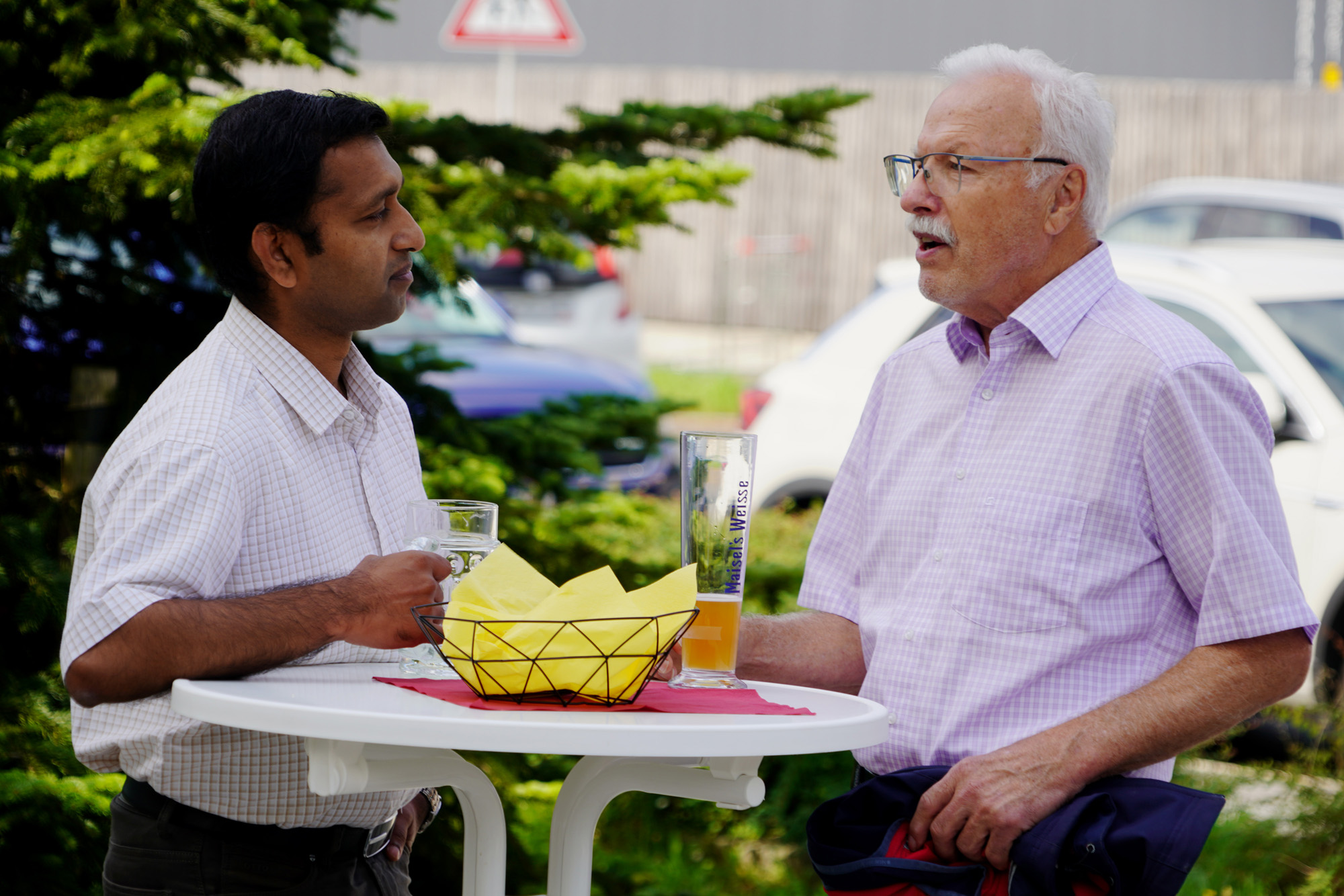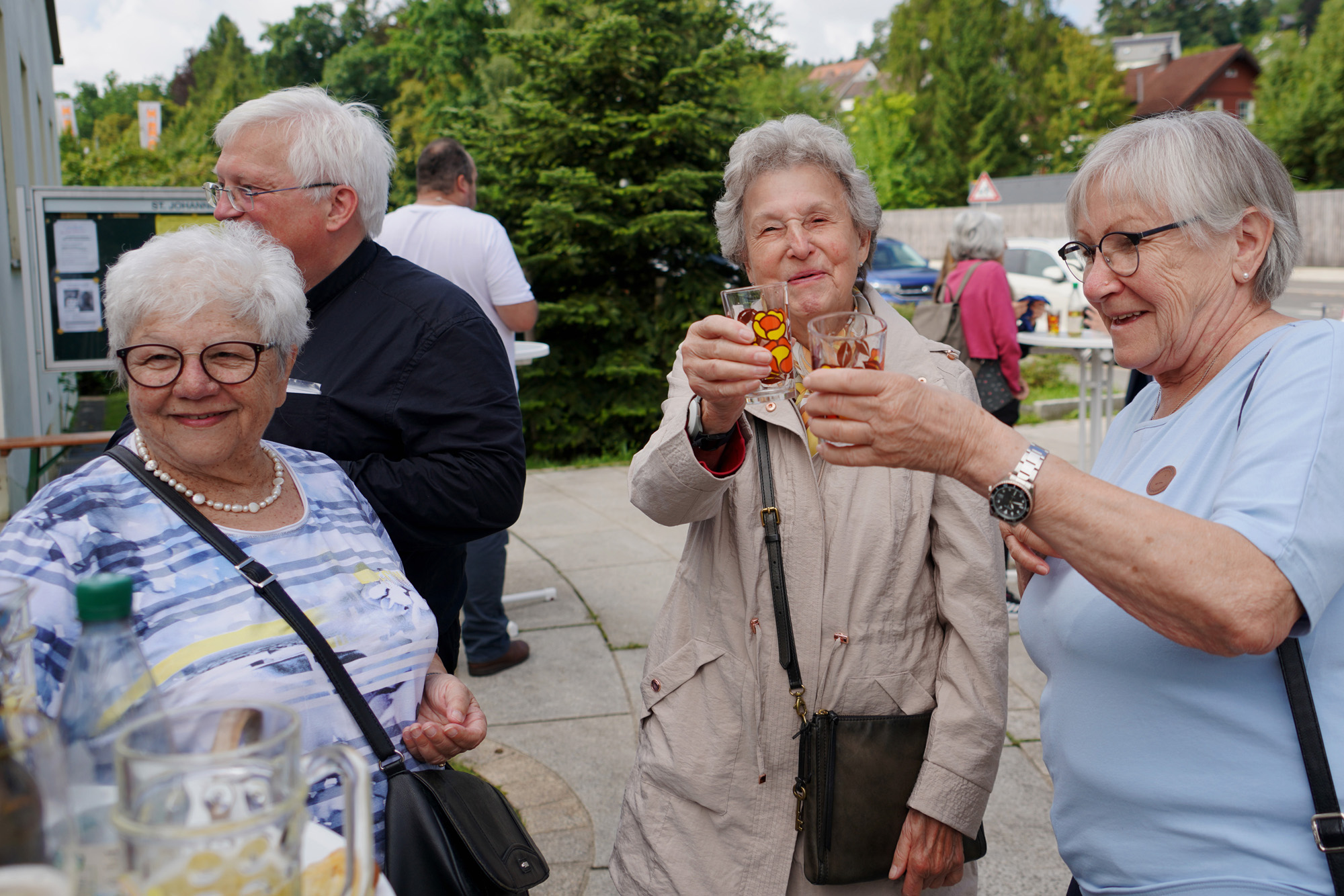 Wie alle Jahre wurden auch heuer nach dem letzten Sonntagsgottesdienst vor den Sommerferien die Fahrzeuge gesegnet. Anschließend fand vor der Johanneskirche der Kirchplatztreff statt. Die Gläubigen, darunter auch Pfarrer Gottfried Schubach und Pfarrvikar Jomet Joy, nutzten die Gelegenheit zu geselligen Gesprächen und genossen die Speckhörndl und kühlen Getränke.