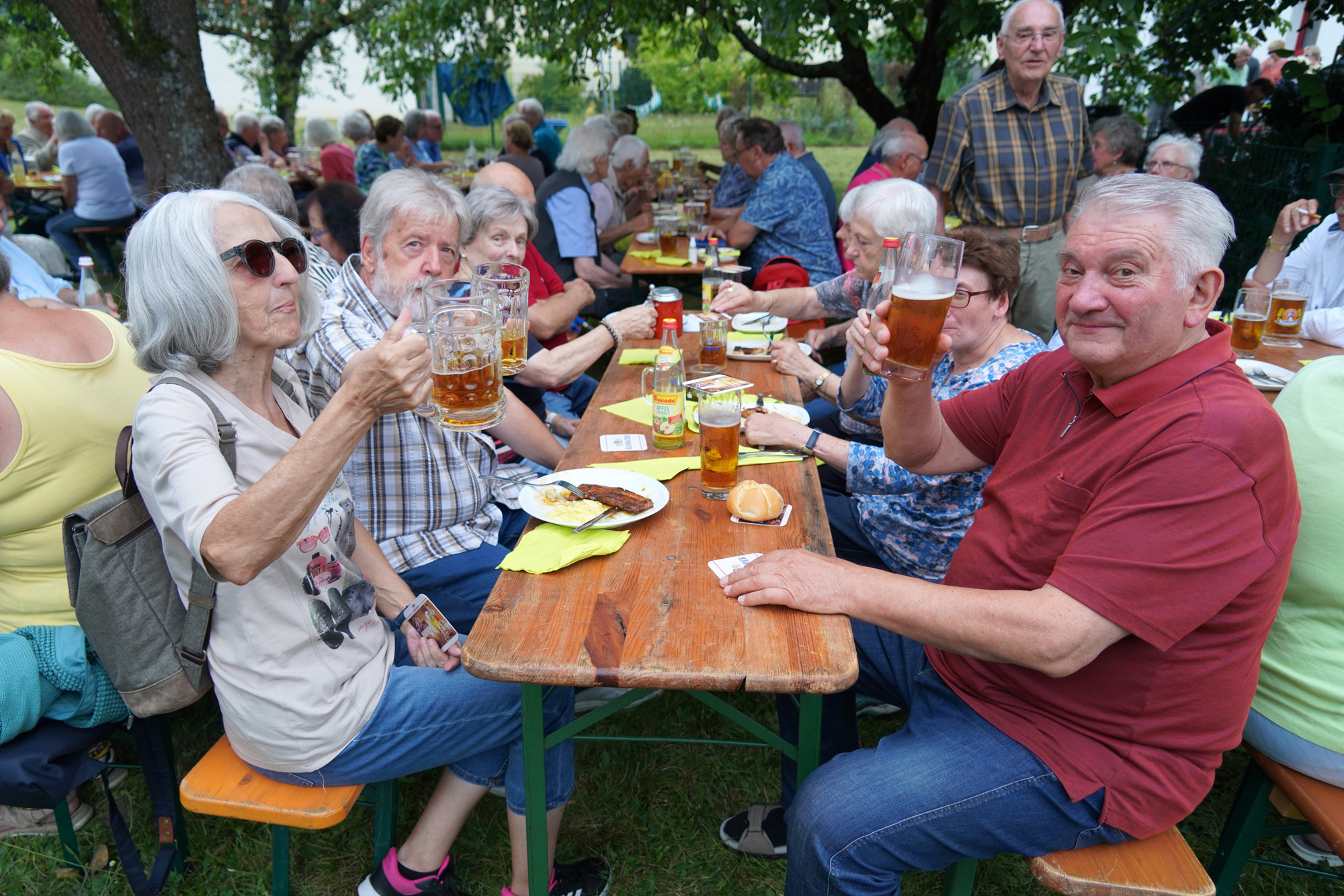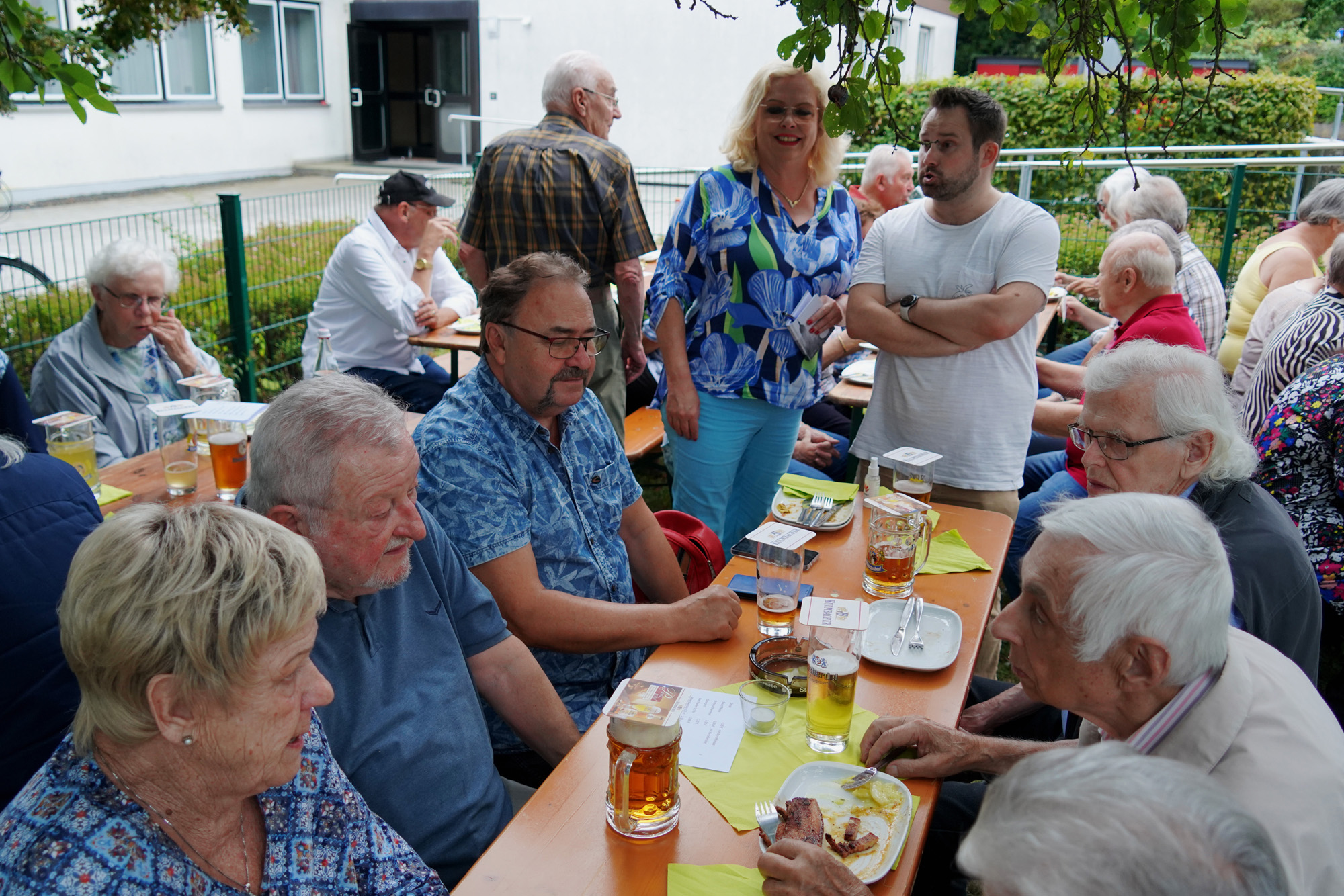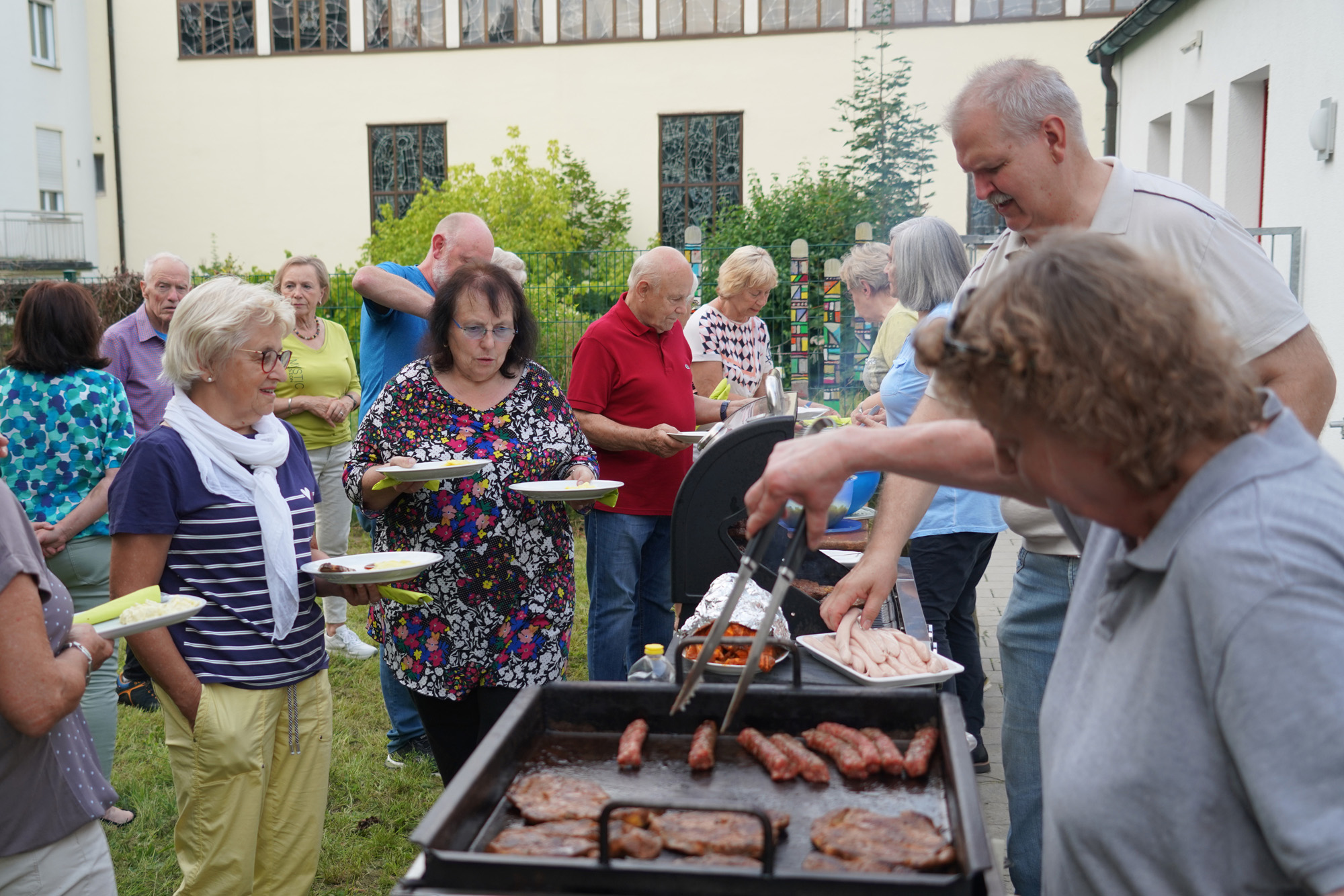 Viele Gäste von der KAB, vom Frauenbund und vom CSU-Ortsverband genossen an einem wunderschönen Sommerabend den traditionellen Grillabend im Pfarrgarten. In geselliger Runde saß man an den Tischen, plauderte und ließ sich das Bier vom Fass und die Schmankerl vom Grill schmecken. KAB-Ortsvorsitzender Hermann Stadler begrüßte alle Besucher, darunter auch Pfarrvikar Jomet Joy, und dankte besonders dem Ehepaar Schreier als versierte Chefs am Grill.