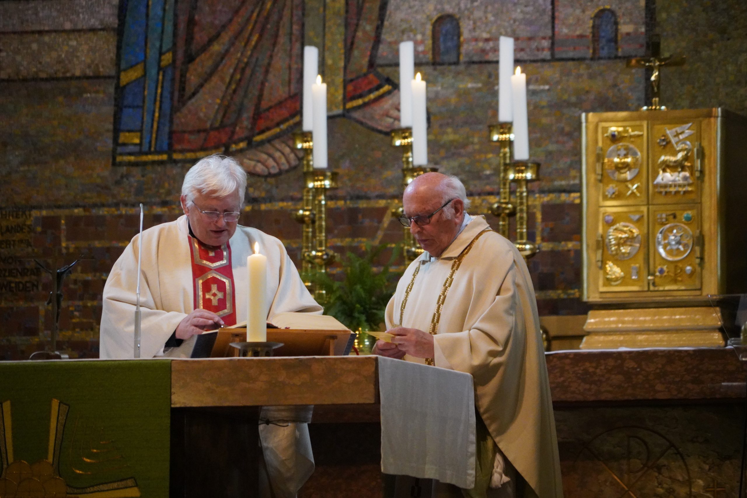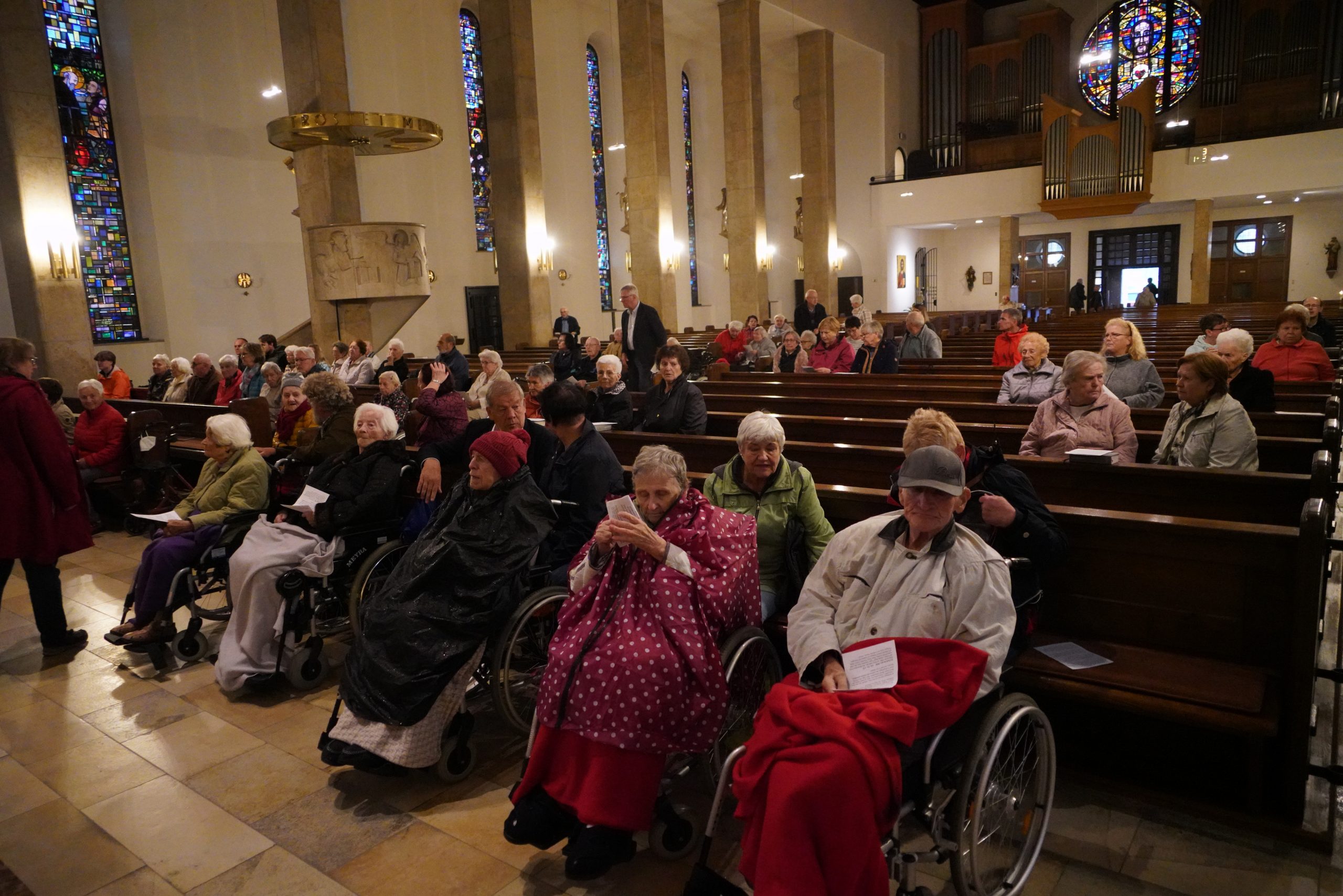 Gemeinsam mit Ruhestandspriester Andreas Hanauer zelebrierte Stadtpfarrer Gottfried Schubach mit kranken und behinderten Menschen aus der Pfarreiengemeinschaft einen besonderen Gottesdienst mit Krankensalbung in der Pfarrkirche Herz Jesu. Viele Helfer hatten es möglich gemacht, dass auch Gehbehinderte und Rollstuhlfahrer sicher zur Kirche und wieder zurück in die Altenheime transportiert wurden. Nach dem Gottesdienst wurden die Gäste zu Kaffee und Kuchen in das Pfarrheim eingeladen und genossen einen besinnlichen und unterhaltsamen Nachmittag.