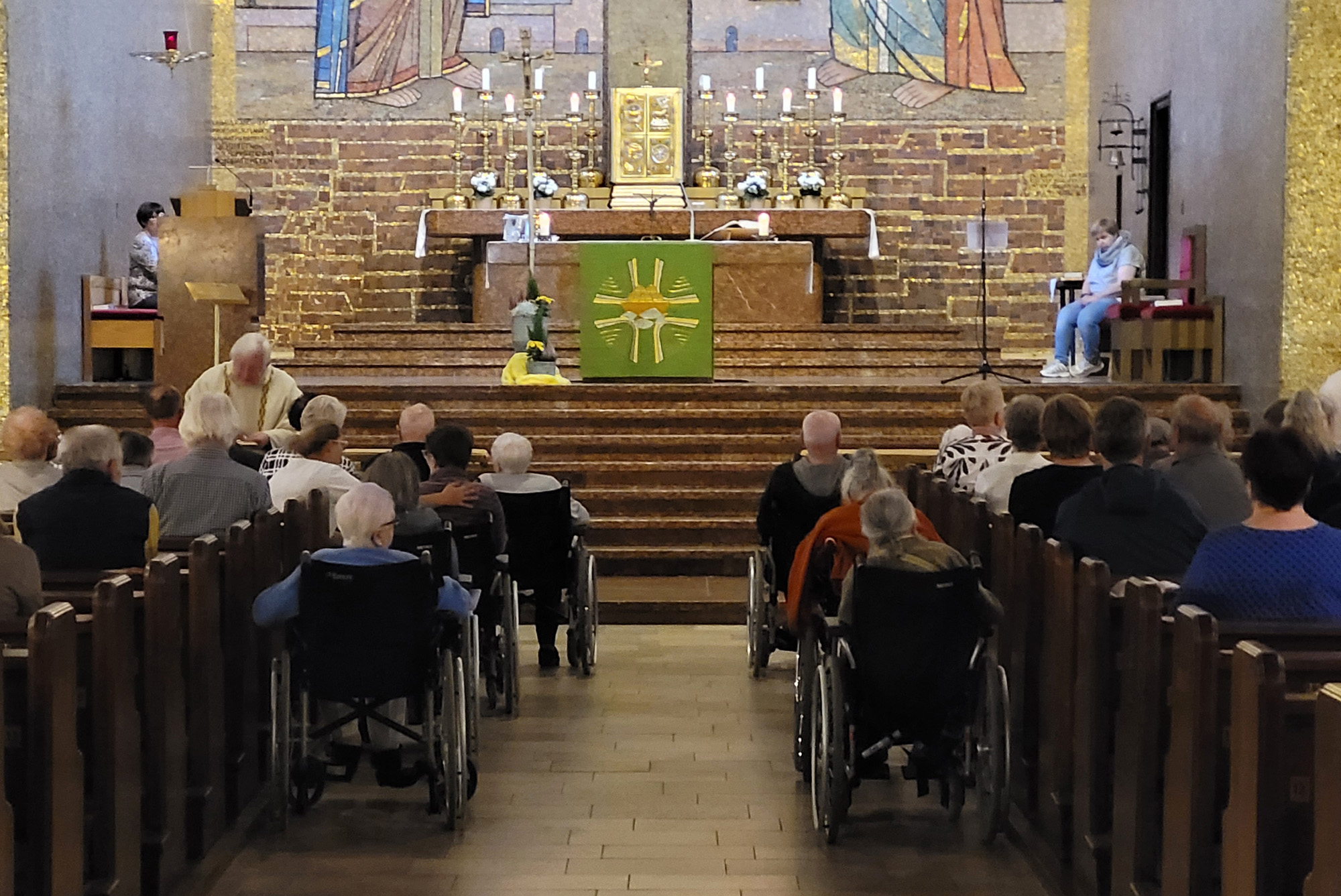 Viele ältere Bewohner der Pfarreiengemeinschaft und aus dem umliegenden Altenheimen AWO Hans Bauer, AWO Franz Zebisch und dem St.-Michaels-Zentrum besuchten den Krankengottesdienst in der Pfarrkirche Herz Jesu. Sie wurden von vielen Helfern mit Pkws bzw. mit Rollstühlen zur Kirche und wieder zurück transportiert.