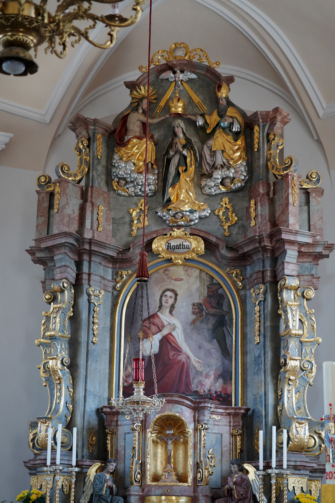 Doris Zeitler begrüßte im Bus viele Mitglieder und Freunde vom Frauenbund St. Johannes und Herz Jesu und informierte über den geplanten Programmablauf. Ziel war Falkenberg, wo in der St. Agatha-Kirche mit musikalischer Unterstützung der Instrumentalgruppe von St. Johannes eine Maiandacht gefeiert wurde.