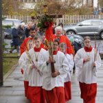 Vor dem Pfarrheim St. Johannes segnete Pfarrer Gottfried Schubach die Palmbuschen und verlas das Evangelium. Anschließend zogen Pfarrer, Pfarrvikar, Ministranten und die Gläubigen mit dem geschmückten Kreuz in einer Prozession hinüber zur Pfarrkirche. Im Mittelpunkt der Liturgie stand dann die Passion, die Geschichte vom Leiden und Sterben Jesu.