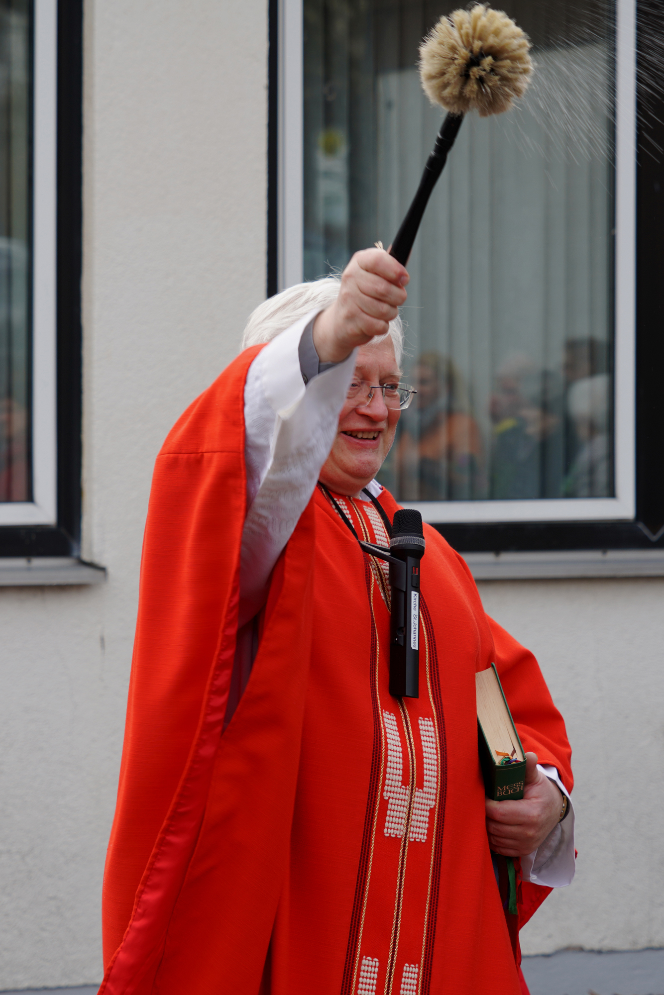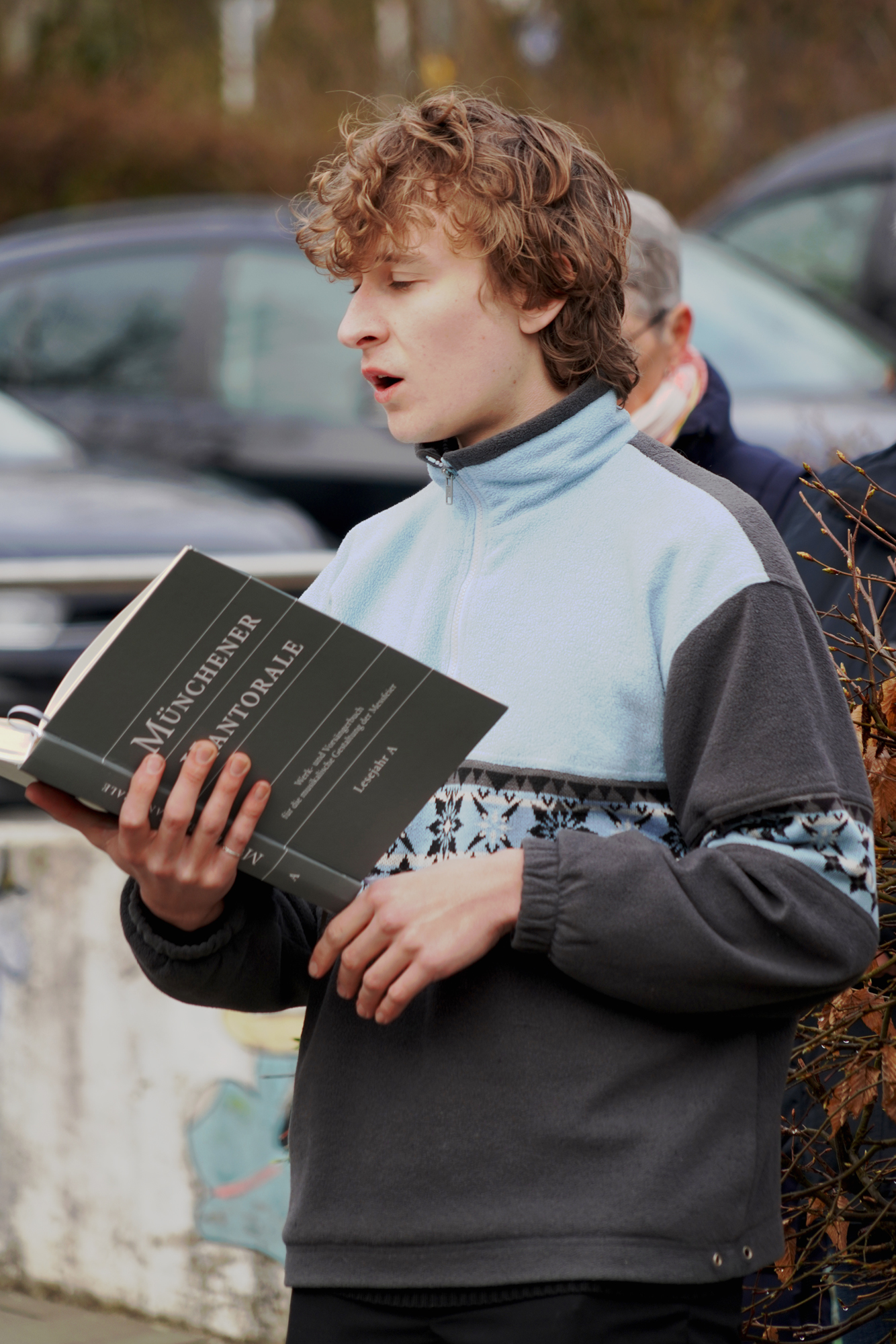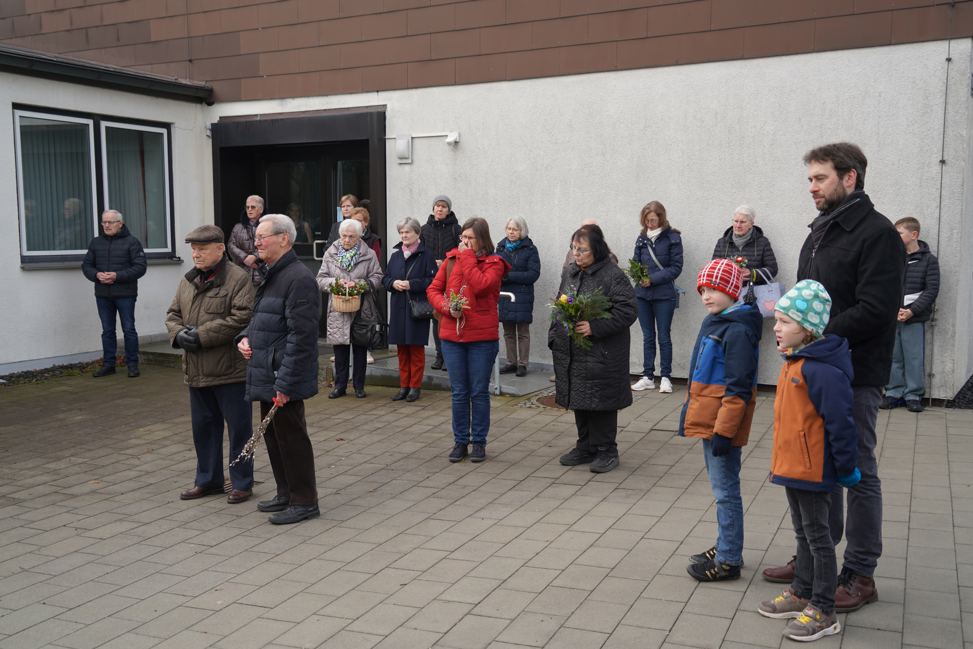 Vor dem Pfarrheim St. Johannes segnete Pfarrer Gottfried Schubach die Palmbuschen und verlas das Evangelium. Anschließend zogen Pfarrer, Pfarrvikar, Ministranten und die Gläubigen mit dem geschmückten Kreuz in einer Prozession hinüber zur Pfarrkirche. Im Mittelpunkt der Liturgie stand dann die Passion, die Geschichte vom Leiden und Sterben Jesu.