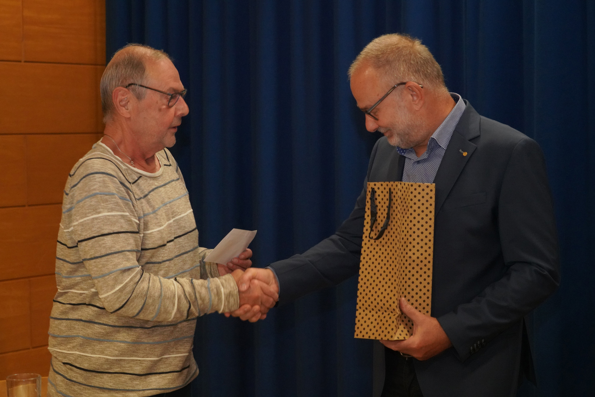 KAB-Vorsitzender Hermann Stadler bedankte sich abschließend beim Referenten für den kurzweiligen und informativen Abend und überreichte ihm als „Vergelts Gott“ eine Spende für die Tafel, die er auch aktiv unterstützt.