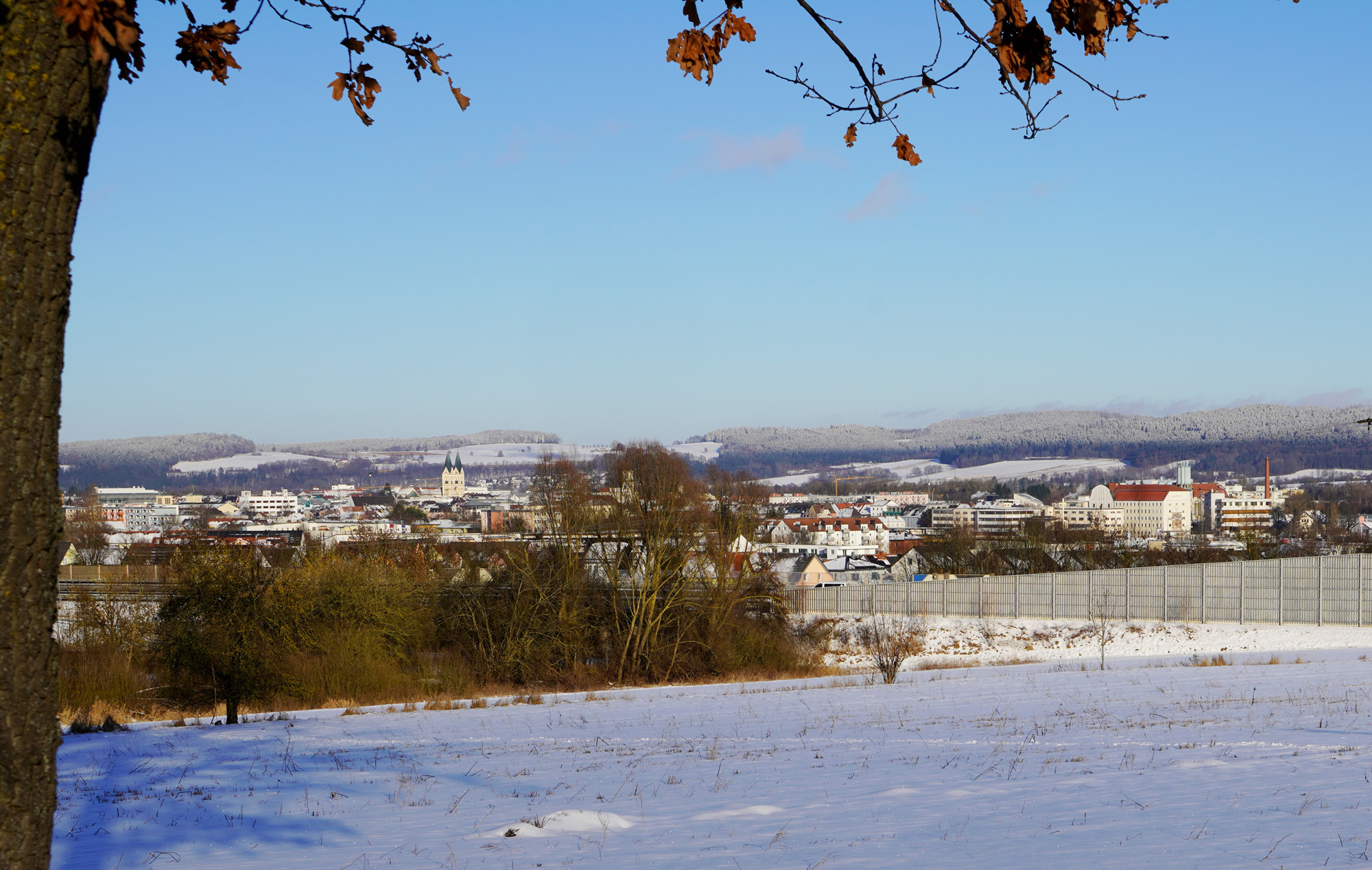 Mit Winter vor der Haustür begann die Rundreise. Ein Blick in den verschneiten Garten, das Kreuz auf der Konradshöhe und über die schneebedeckten Dächer der Stadt. Weiter ging die Reise über den Parkstein, Steinwald, Floß, und Fahrenberg.